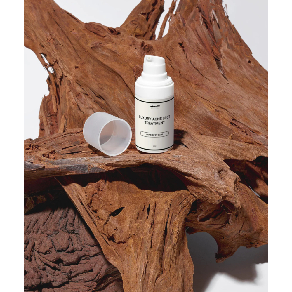 De Luxury Acne Spot Care helpt de huid te kalmeren en roodheid rond het puistje te verminderen. De antibacteriële ingrediënten 2% salicylzuur en 3% tea tree olie zorgen voor een heldere en gezond uitziende huid. Breng een kleine hoeveelheid aan op een schone huid, direct op het puistje.